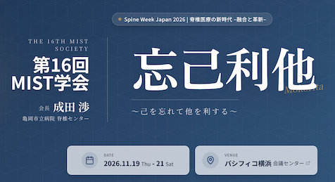 Spine Week Japan 2026の一環として、第16回MIST学会を開催できることを大変光栄に存じます。